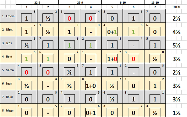 7. runde med det lange parti tæller i øvrigt kun som ét parti.